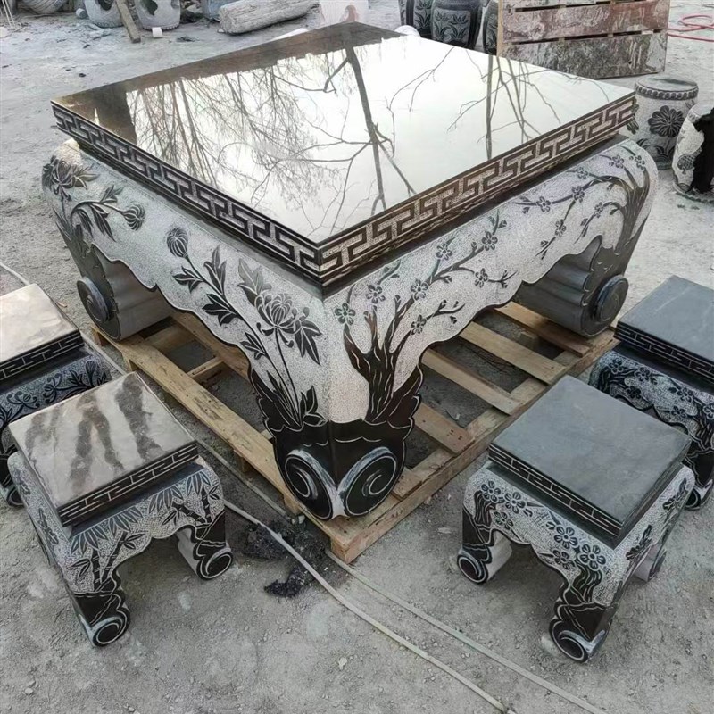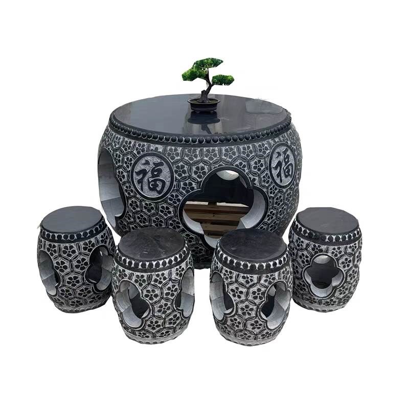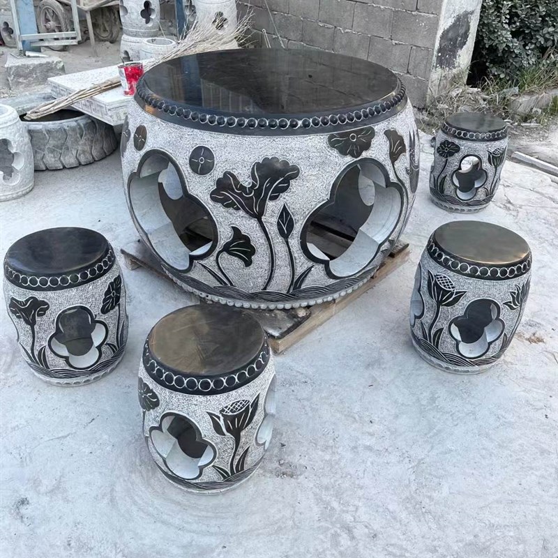 青石庭院圆桌椅一套石雕石桌石凳花园茶桌天然大理石桌子户外摆件