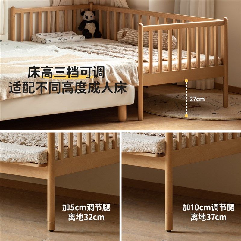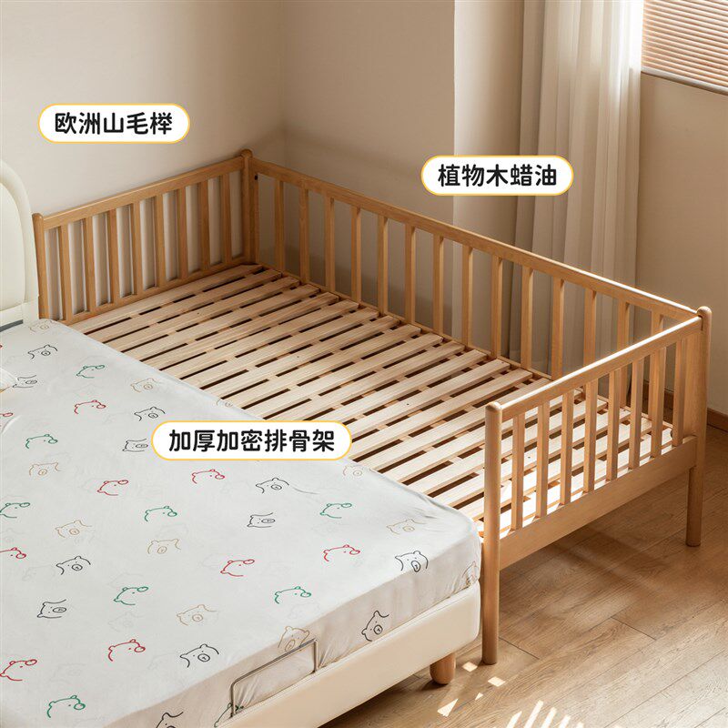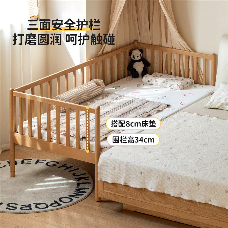 源氏木语儿童实木拼接床婴儿防摔带护栏边床卧室可调节无缝加宽床