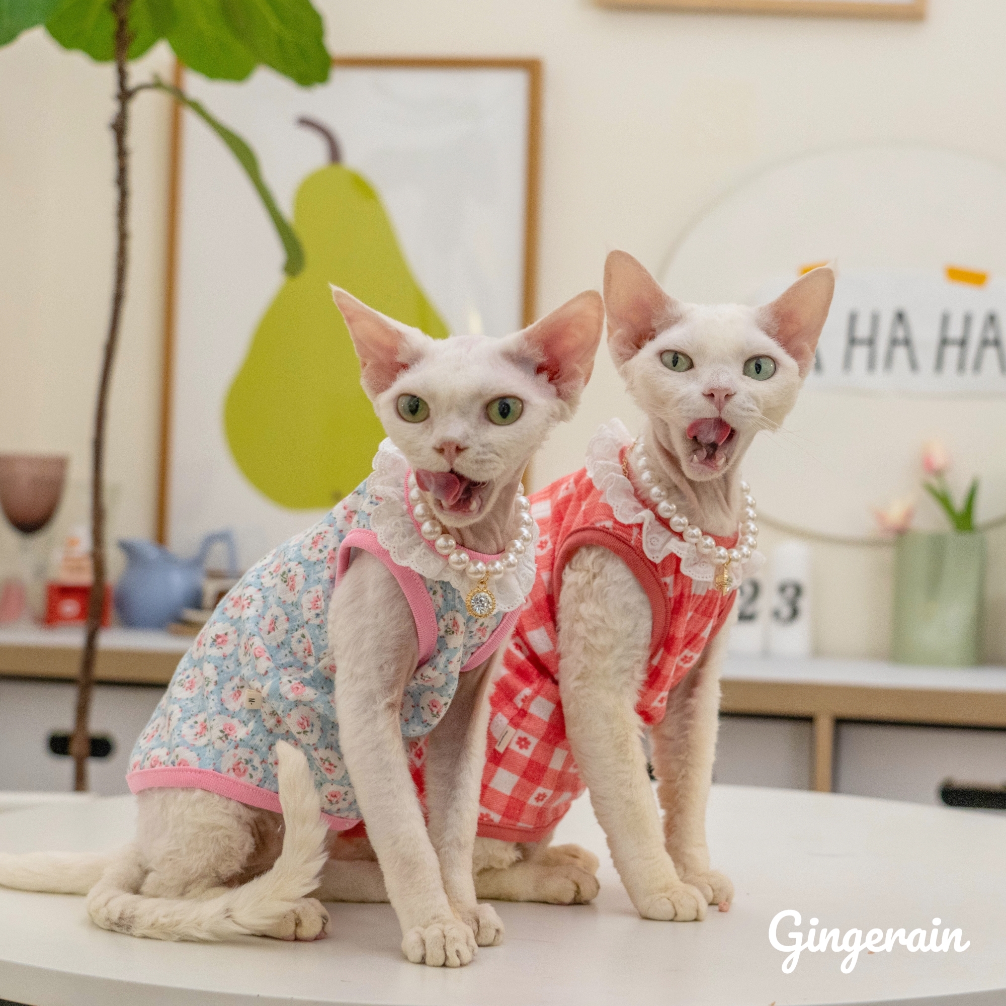 GINGERAIN 无毛猫衣服斯芬克斯德文纯棉透气可爱甜美系娃娃领背心