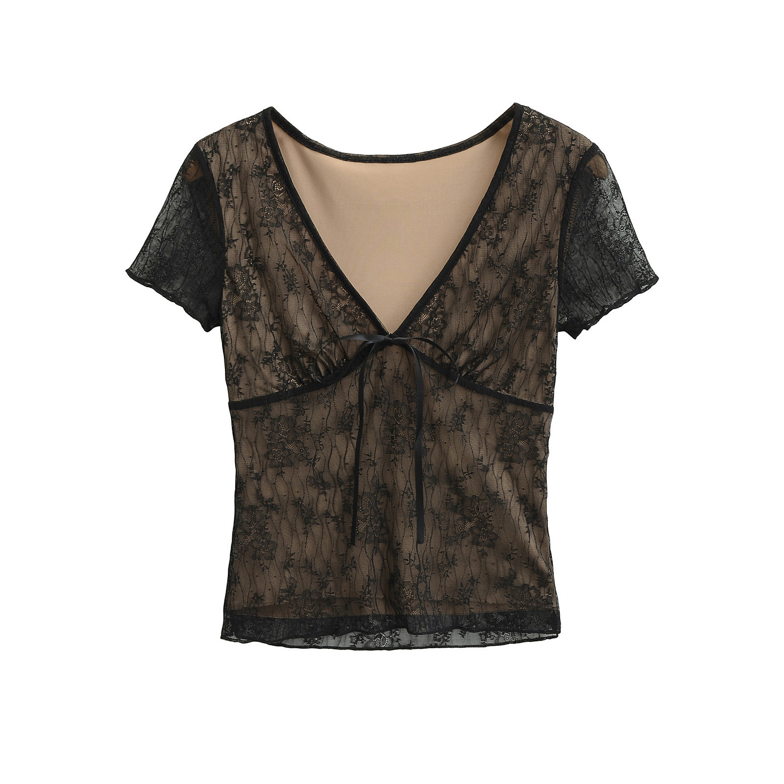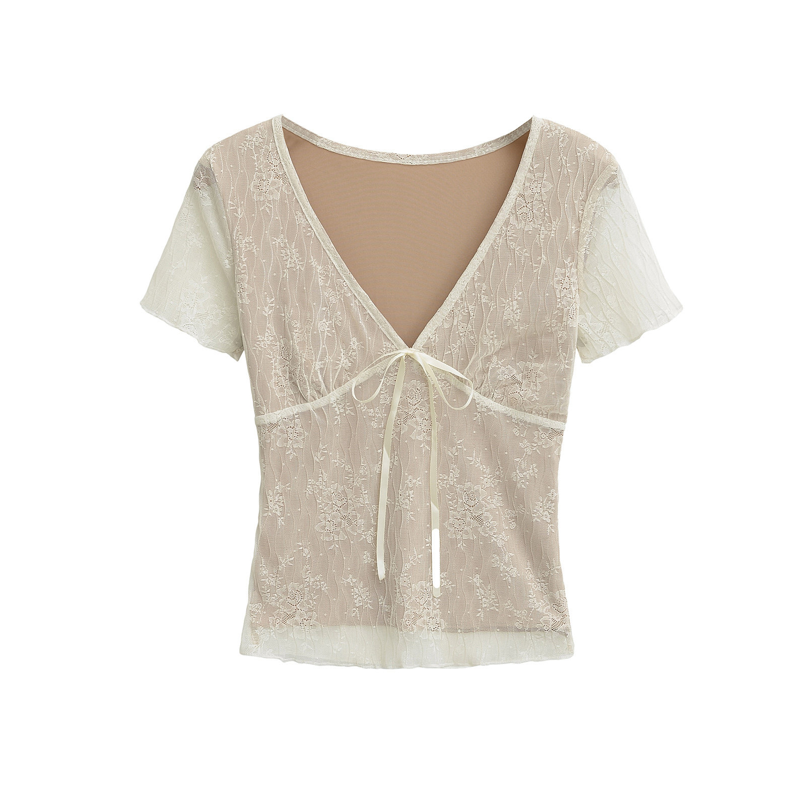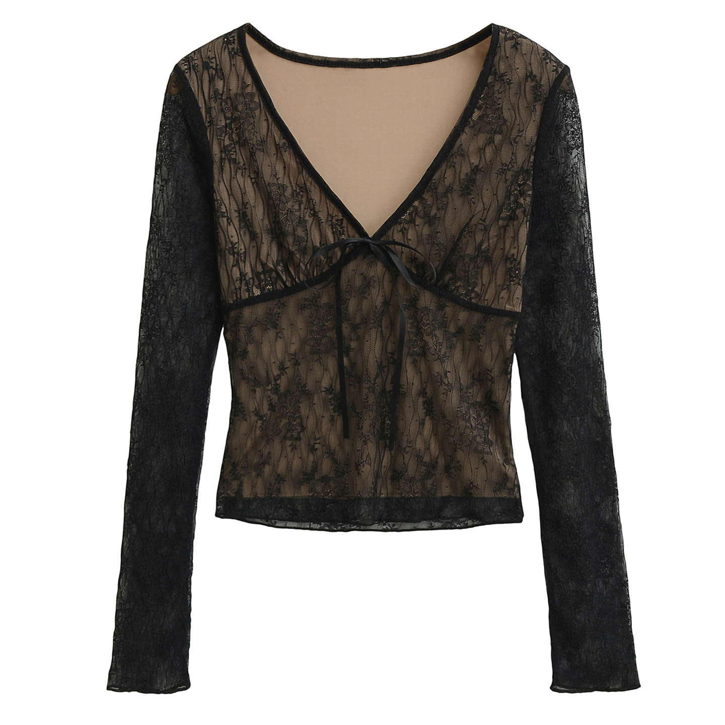 设计感V领蝴蝶结蕾丝衫女
