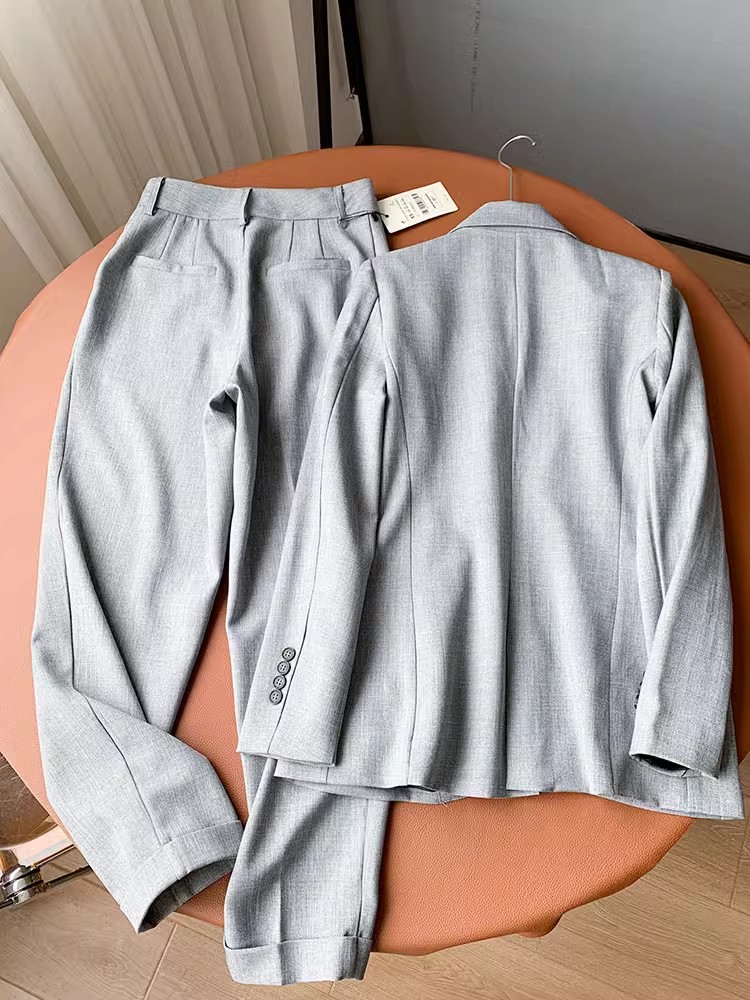 西班牙dan~秋装新通勤气质休闲西装外套+高腰显瘦小直筒西裤套装
