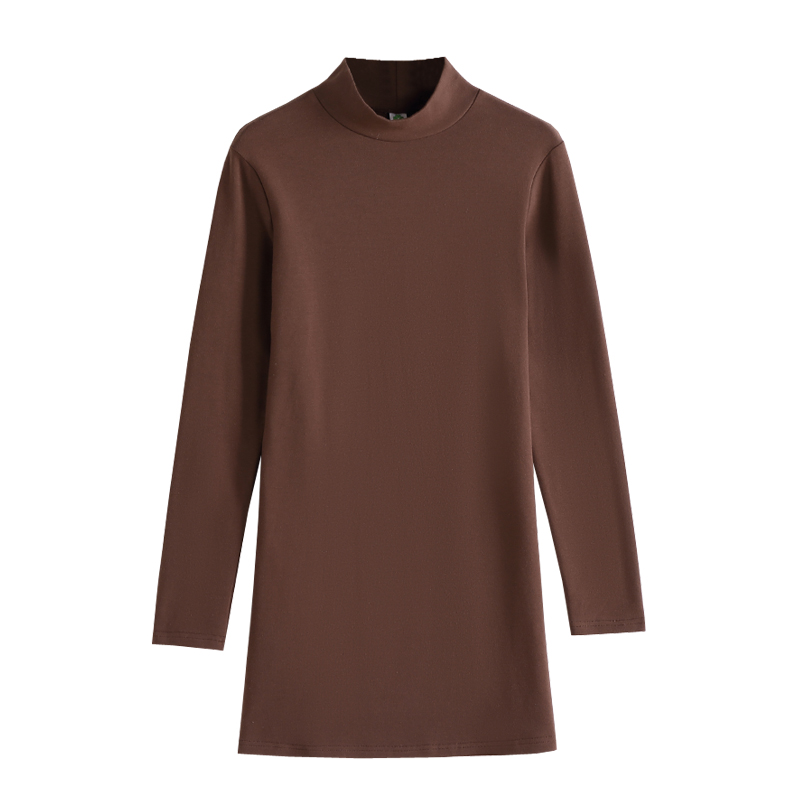 中长款半高领长袖t恤女纯棉纯色大码包臀长款秋衣中年妈妈打底衫