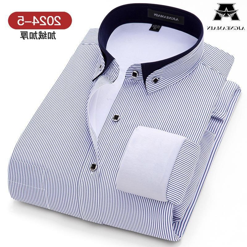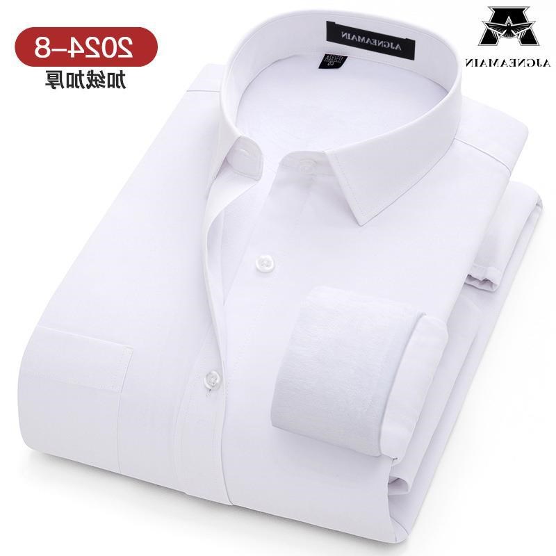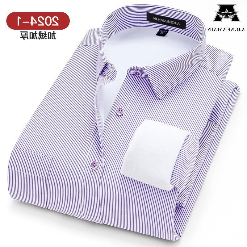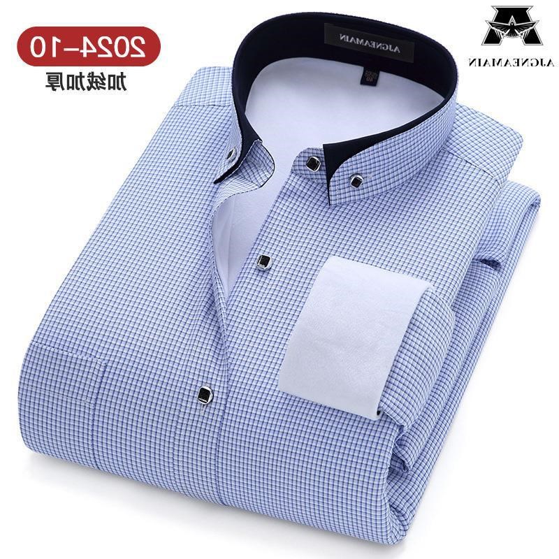 秋冬季商务休闲加厚亲肤保暖新款纯色衬衣衬衫加绒中年男士长袖棉
