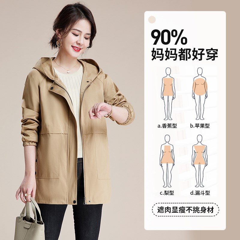 中年妈妈春装外套洋气大码新款上衣40岁中老年女士风衣春秋中长款