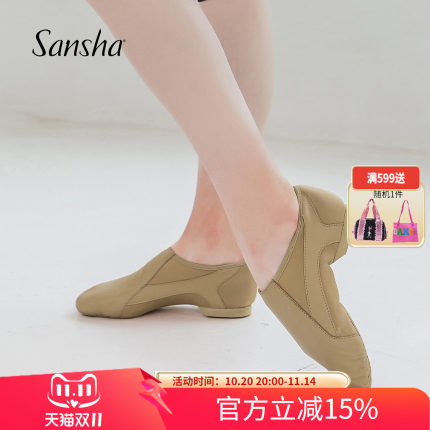 Sansha 法国三沙爵士舞鞋矮帮松紧舞蹈鞋进口牛皮面现代舞练功鞋