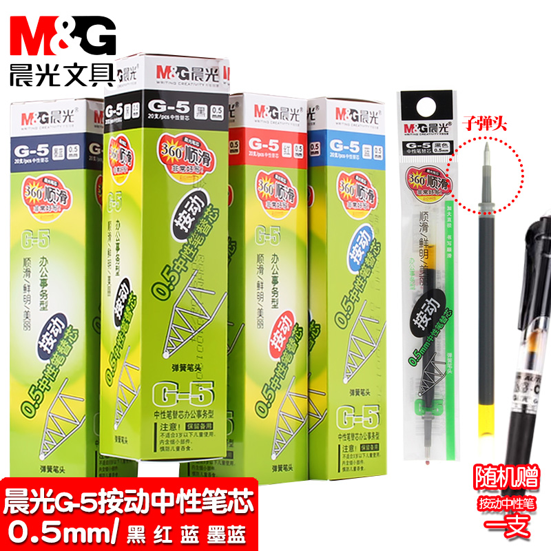包邮晨光中性笔笔芯黑0.5mm0.38mm按动笔芯集合按动中性笔芯外观有趣种类多样红蓝黑墨蓝色按动式替芯晨光
