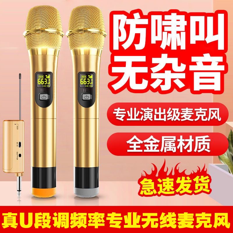 万能无线话筒U段一拖二家用音响通用K歌全金属麦克风KTV声卡用