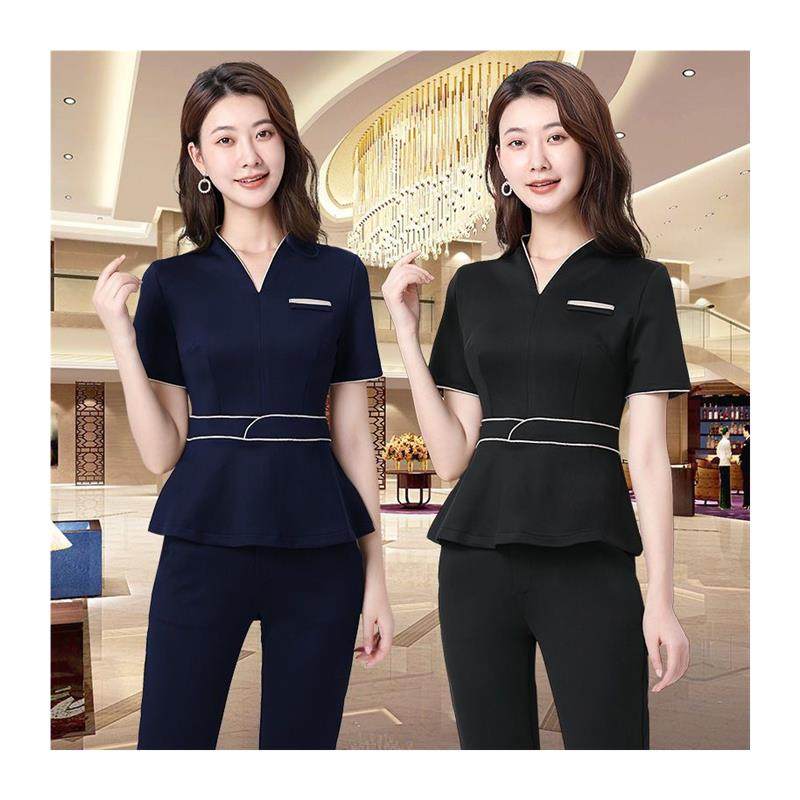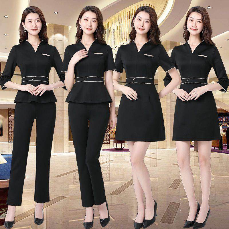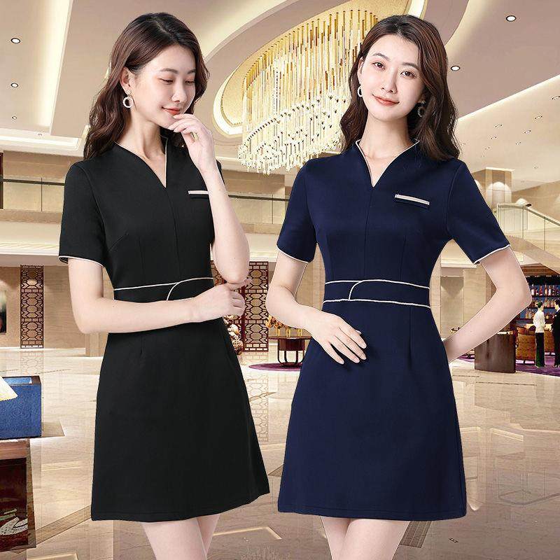 美容师工作服女夏季美容院连衣裙时尚养生师高端工服气质弹力套装
