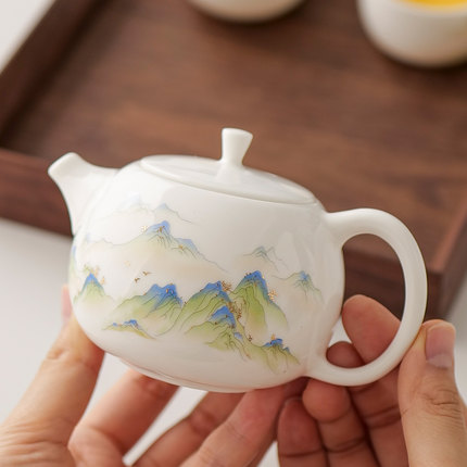 羊脂玉白瓷茶壶家用中式陶瓷西施壶功夫泡茶壶一人用茶具单壶茶杯