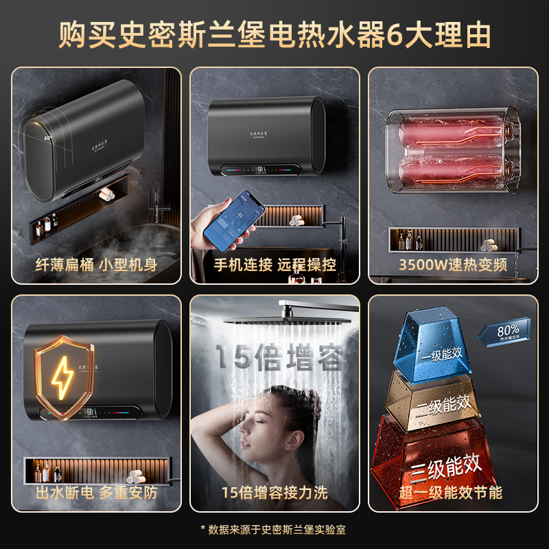 史密斯兰堡电热水器电家用洗澡卫生间一级能效60升速热扁桶3500W
