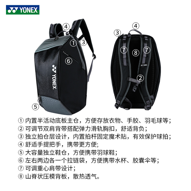 新款正品YONEX尤尼克斯羽毛球包男女款yy双肩包运动背包球拍包包
