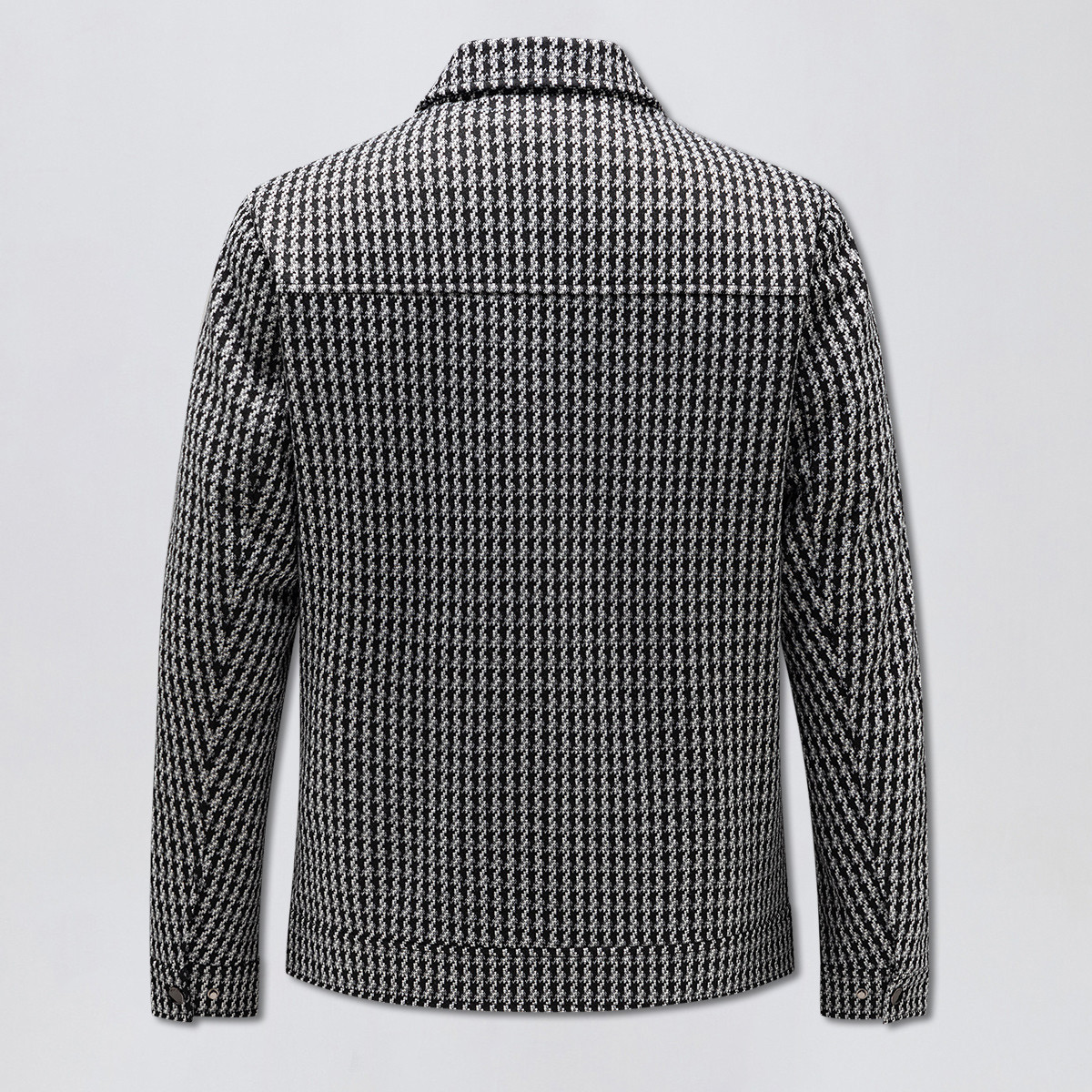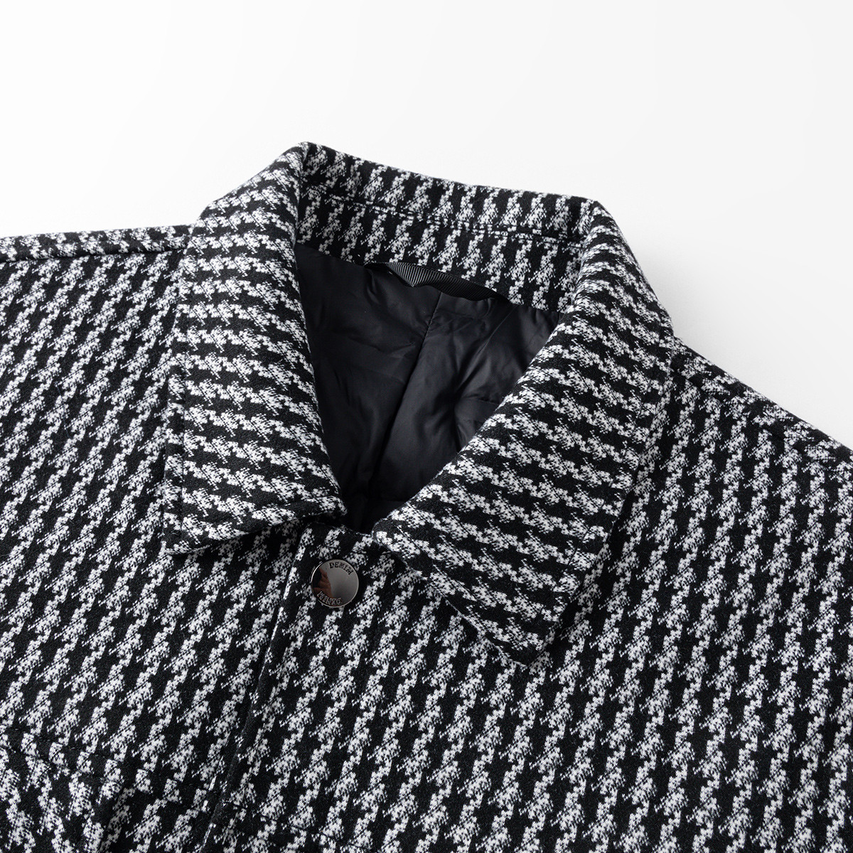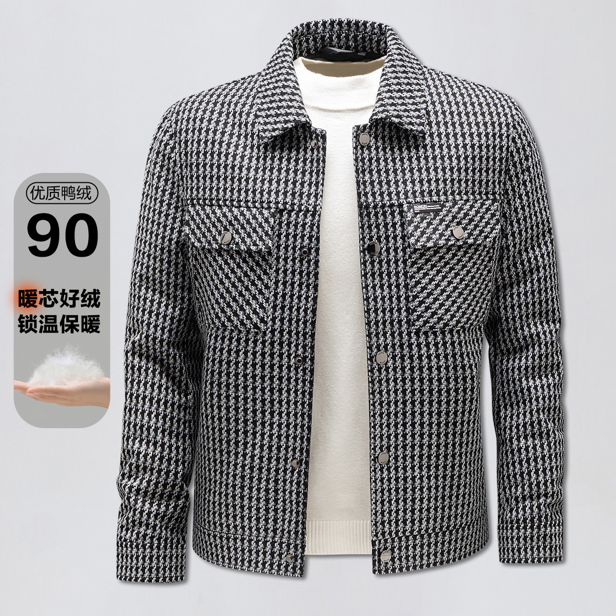 罗蒙秋冬装男士千鸟格轻薄羽绒服小香风工装短款翻领毛呢夹克外套