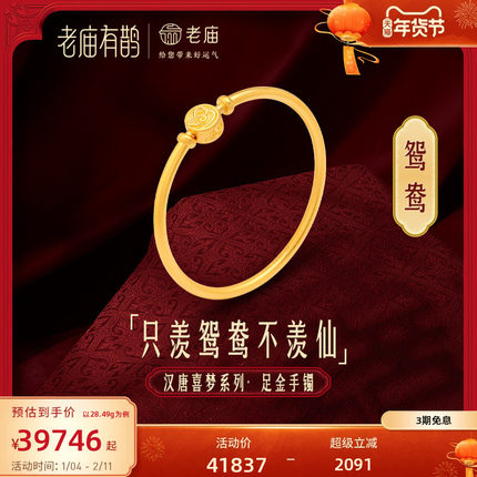 老庙有鹊黄金足金999鸳鸯固口手镯古法三金泥鳅背龙梓嘉设计
