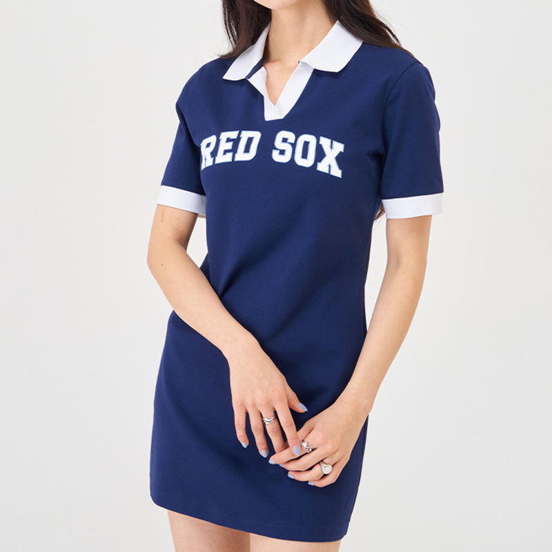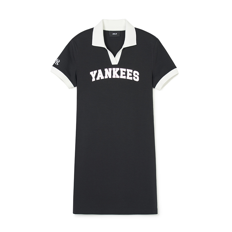 24新款MLB连衣裙女复古学院风拼色polo翻领休闲运动裙3FOPV0143