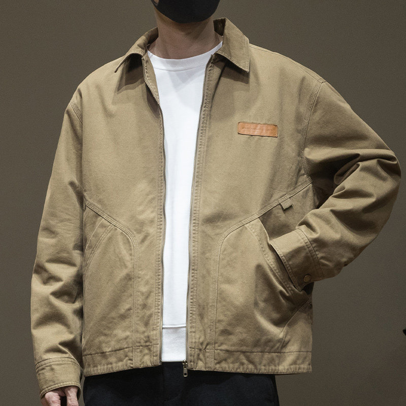 美式复古春秋重磅休闲夹克男款2025秋冬新款宽松大码胖子棉衣外套