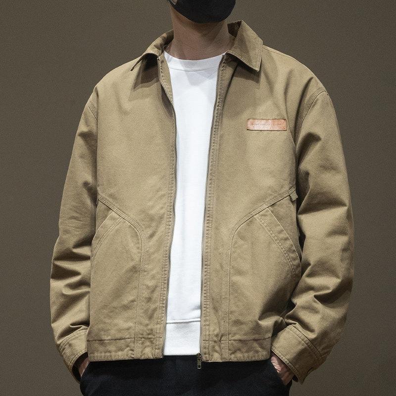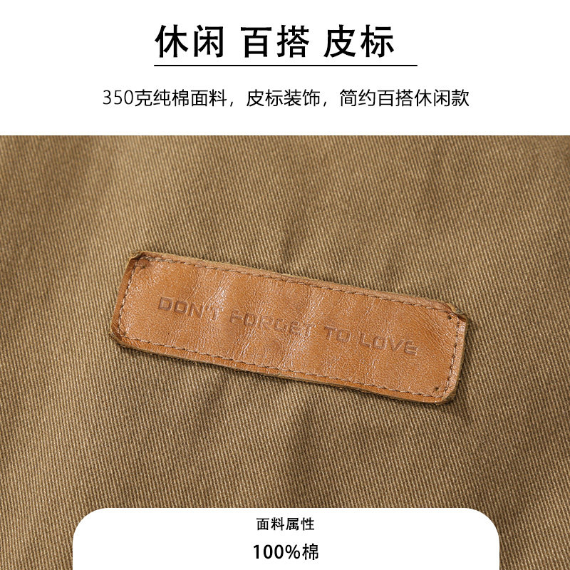 百搭休闲皮标装饰长袖夹克