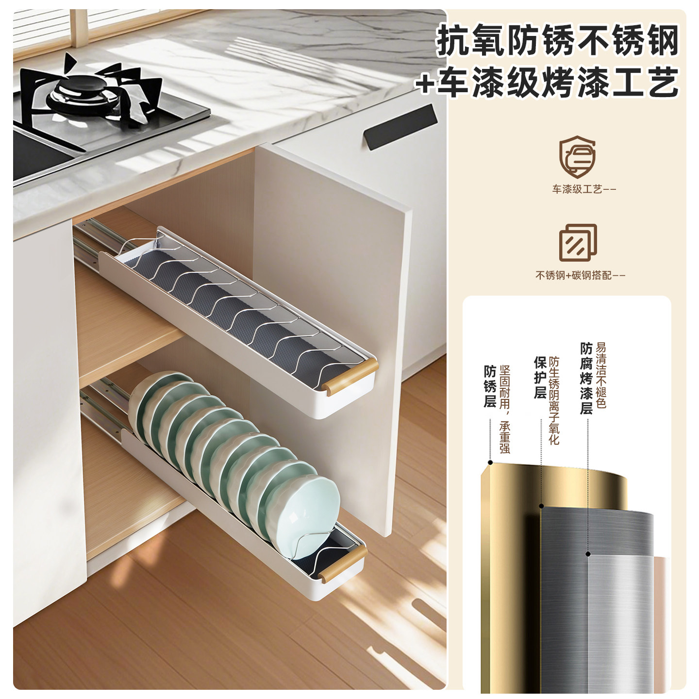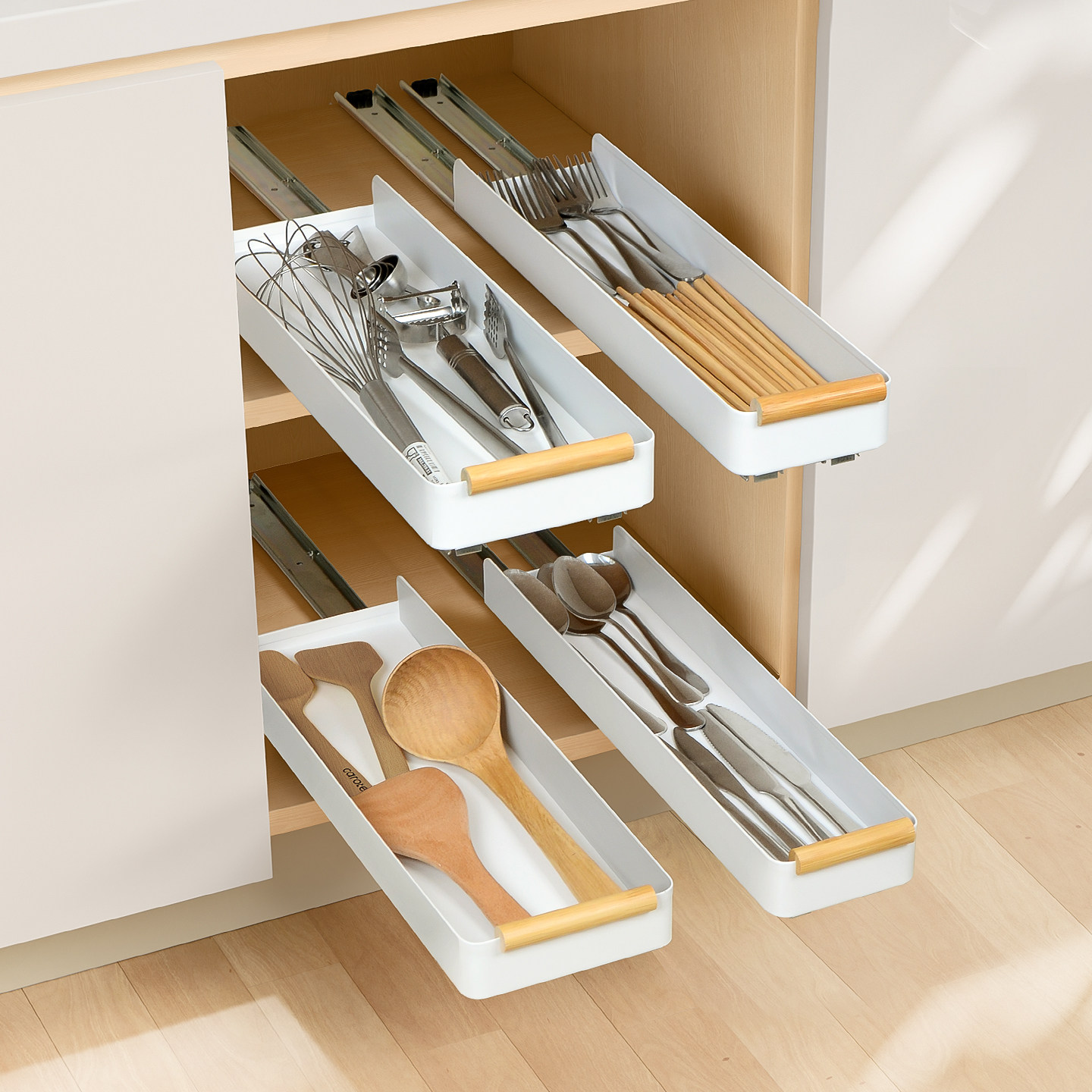 厨房铲子勺子刀筷子置物架抽屉式厨具刀叉拉篮橱柜窄缝锅铲放置器