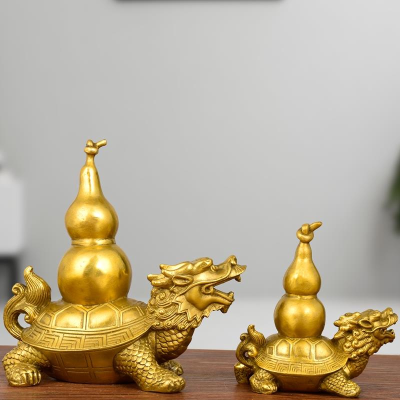 纯铜龙龟葫芦福禄双全招财镇宅家居工艺品动物桌面客厅摆件大号