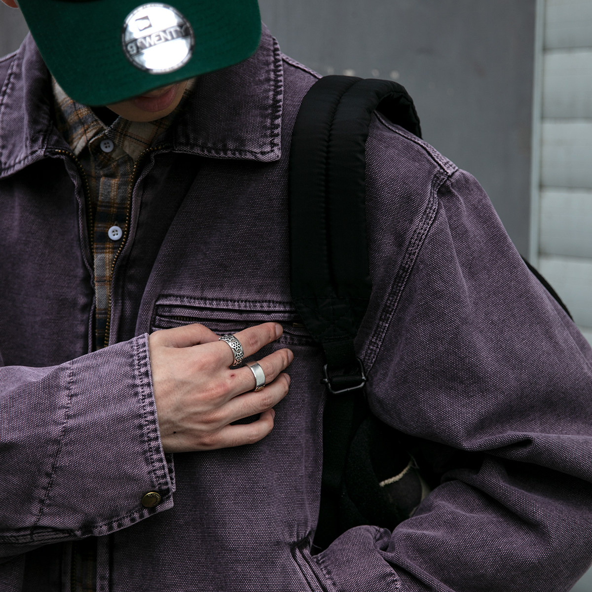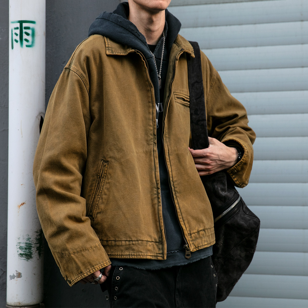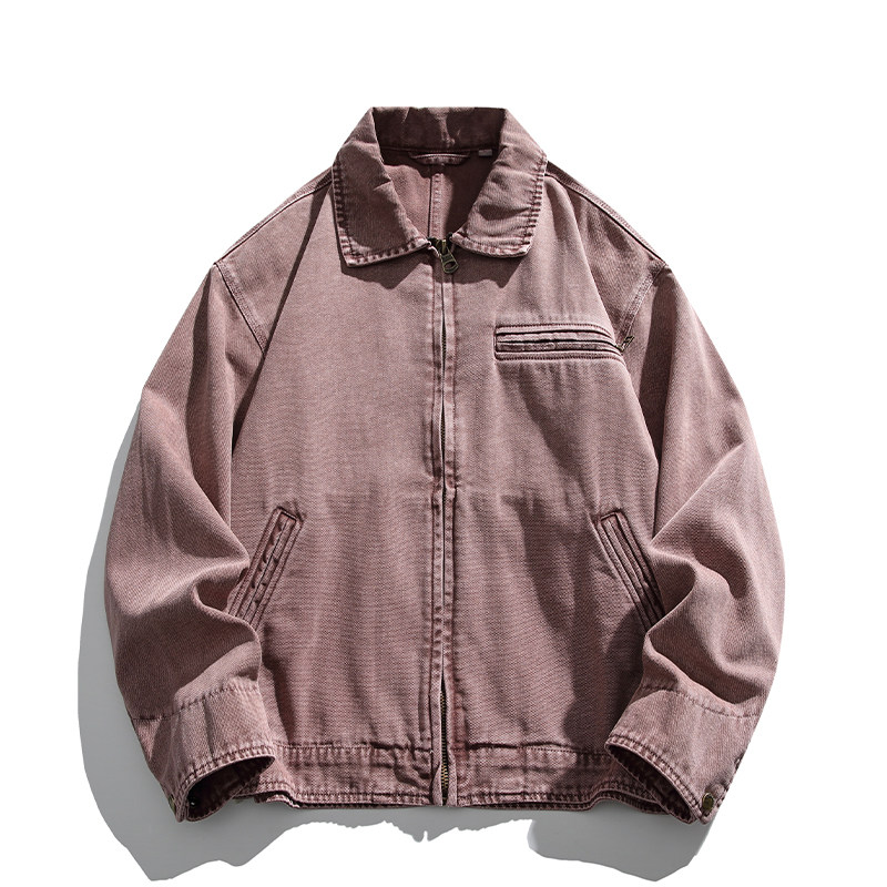 日系复古重水洗炒染碳磨粗珠帆底特律夹克男春秋翻领短款工装外套