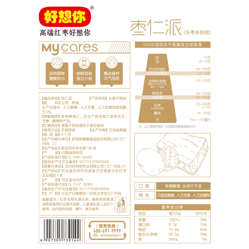 【好想你_枣仁派】198g*3袋红枣夹核桃灰枣夹心蜜饯零食红小派