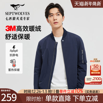 【抗静电】七匹狼棒球领夹克2025秋季新款暖绒棉蓄热保暖茄克外套