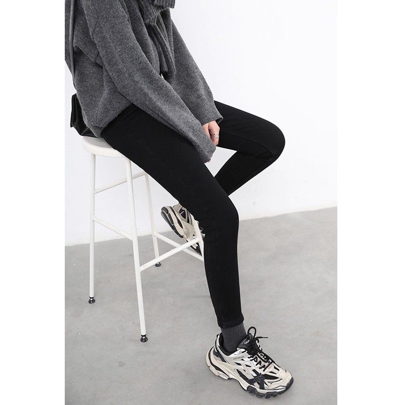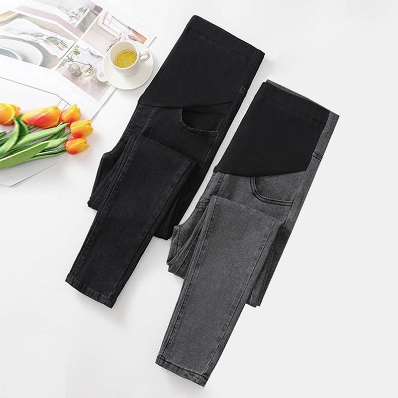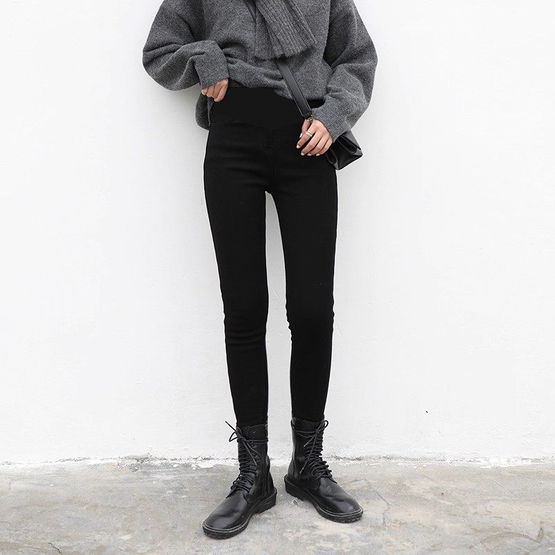 孕妇烟灰色小脚牛仔裤子秋冬季加绒外穿2025新款托腹打底裤紧身裤