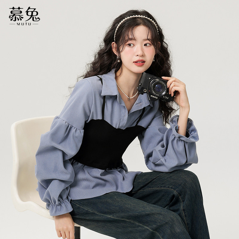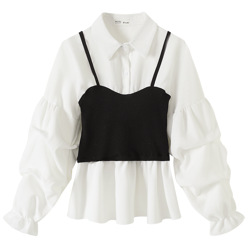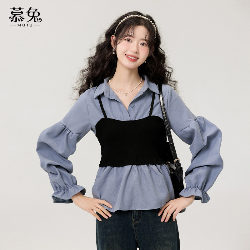 慕兔法式长袖假两件衬衫