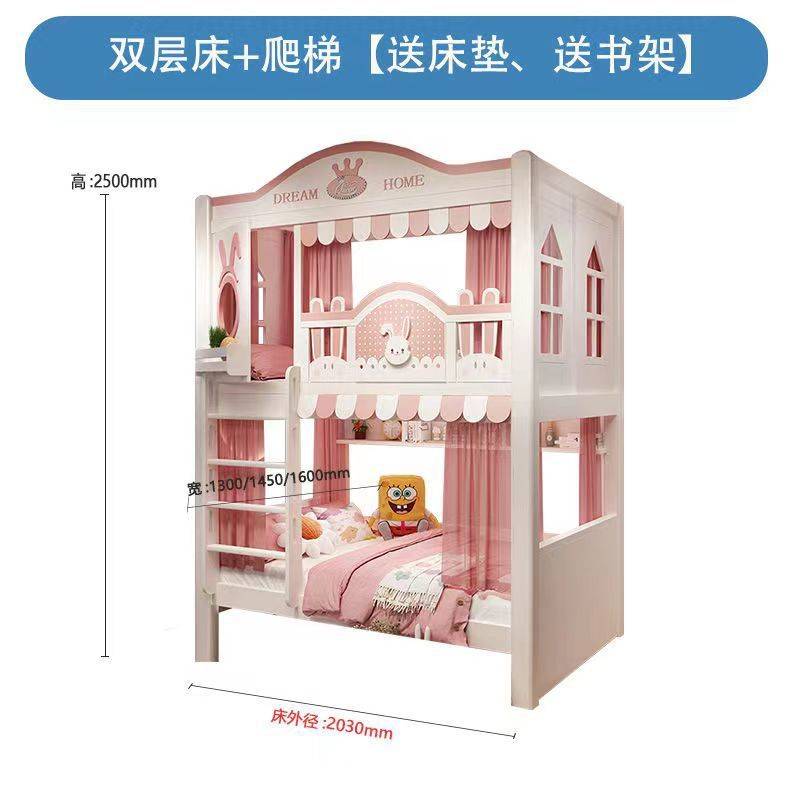 儿童床女孩公主上下铺床两层床高低床儿童姐妹床高护栏滑梯高架床