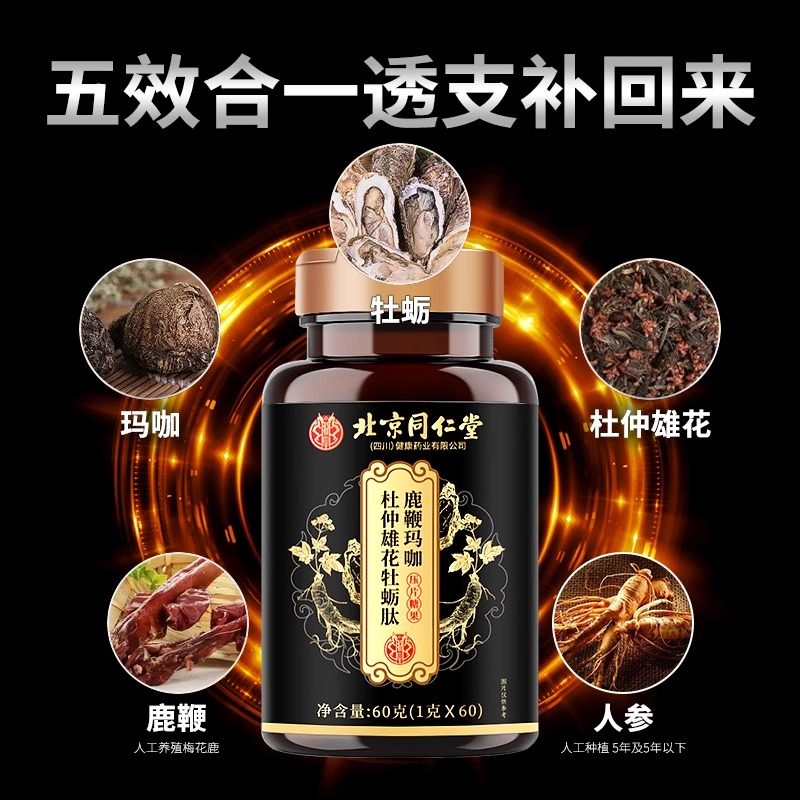 北京同仁堂牡蛎片玛咖人参鹿鞭牡蛎肽男性玛卡非保健滋补品男士uu