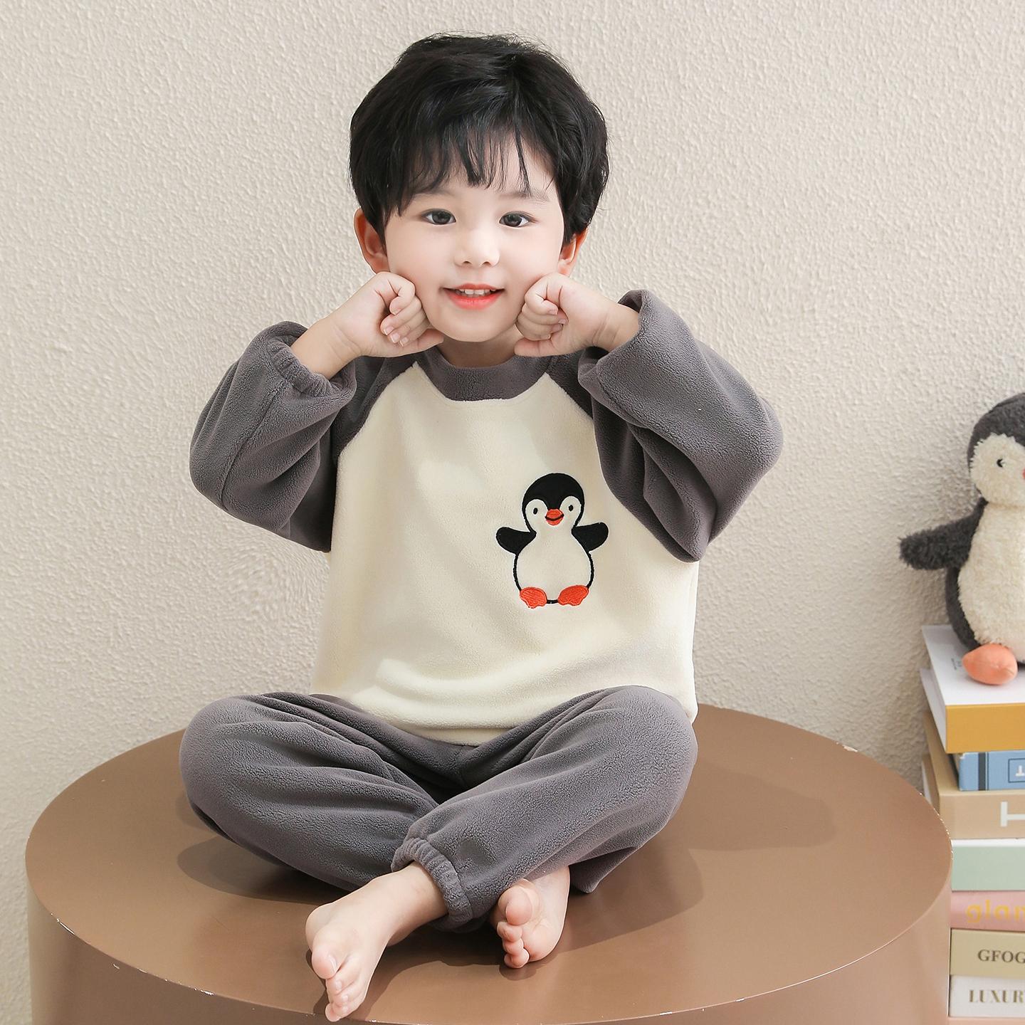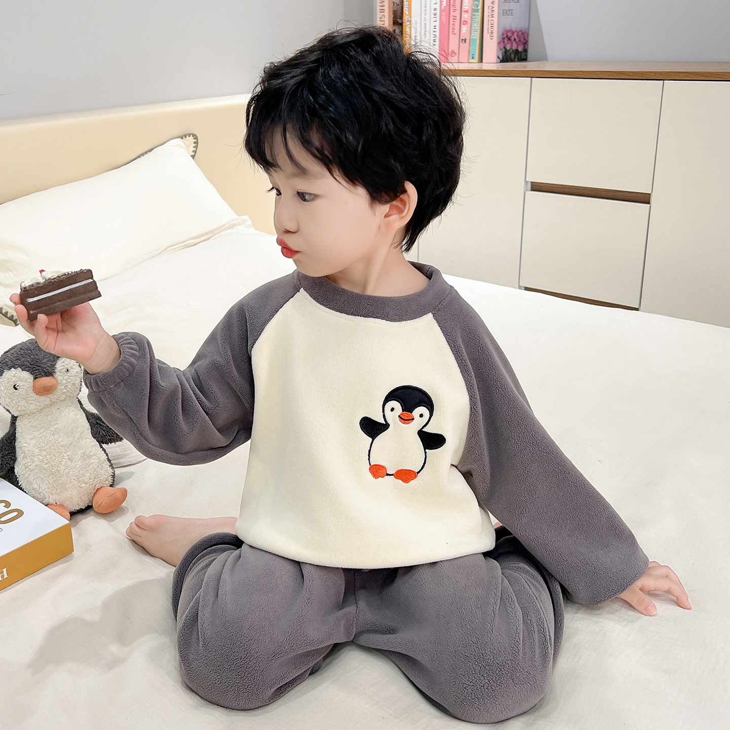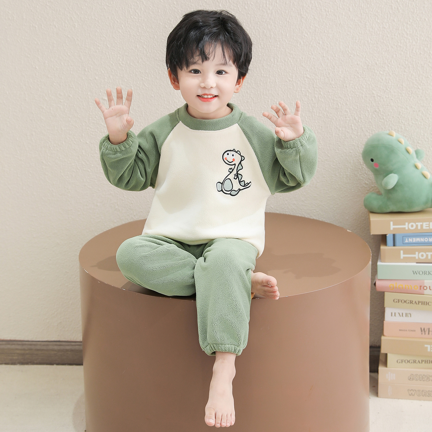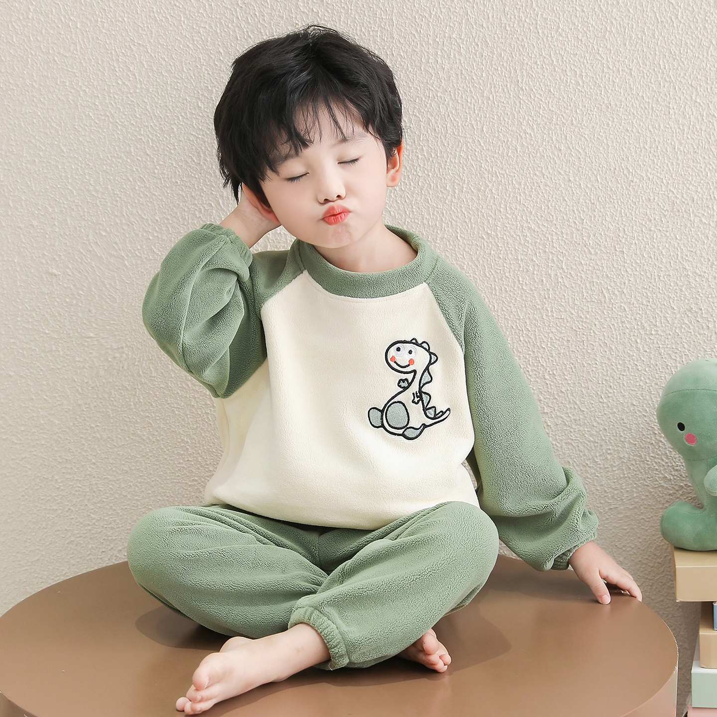 男童奥粒绒睡衣套装秋冬新款加厚