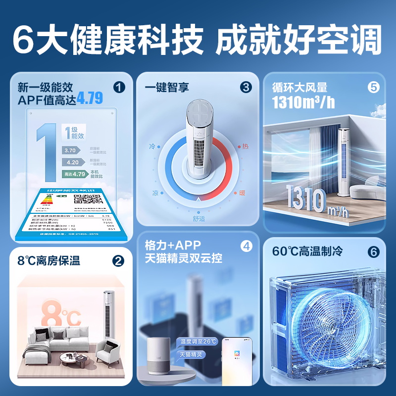 【格力官方政府补贴】空调柜机一级能效变频冷暖2匹云锦三代