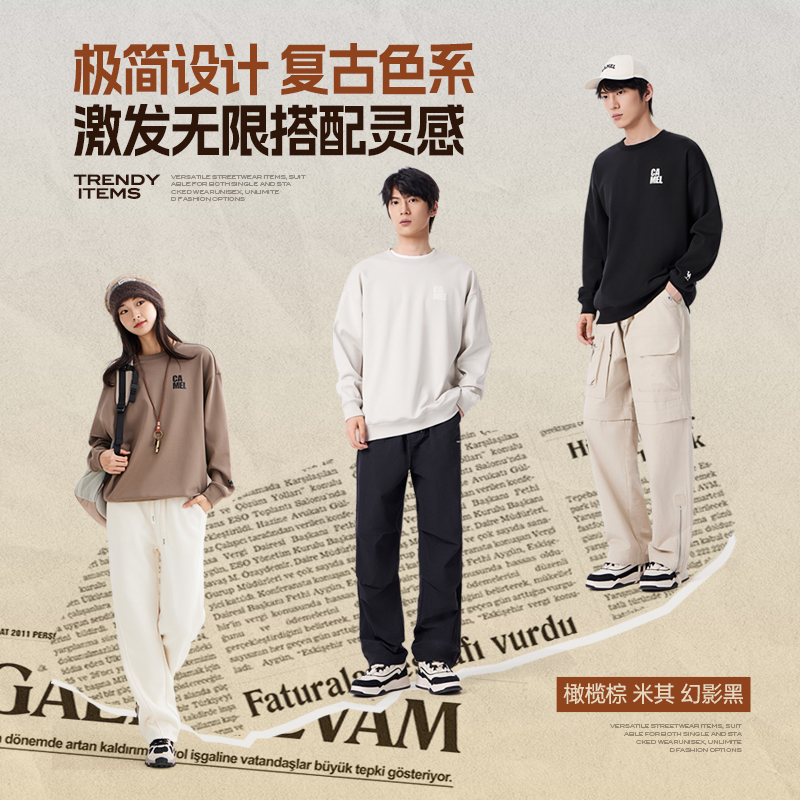 骆驼男装圆领卫衣男秋冬季2025新款加绒加厚保暖情侣美式长袖上衣