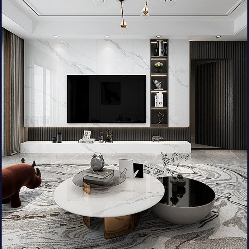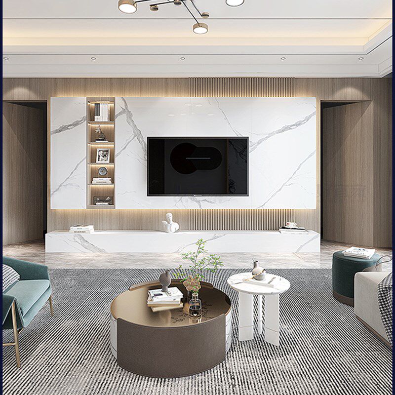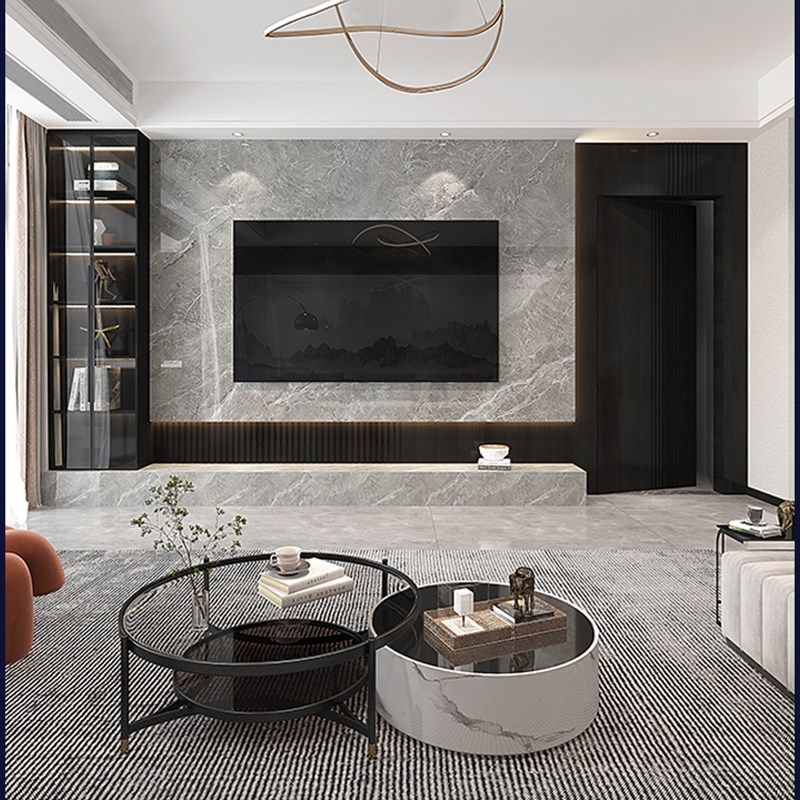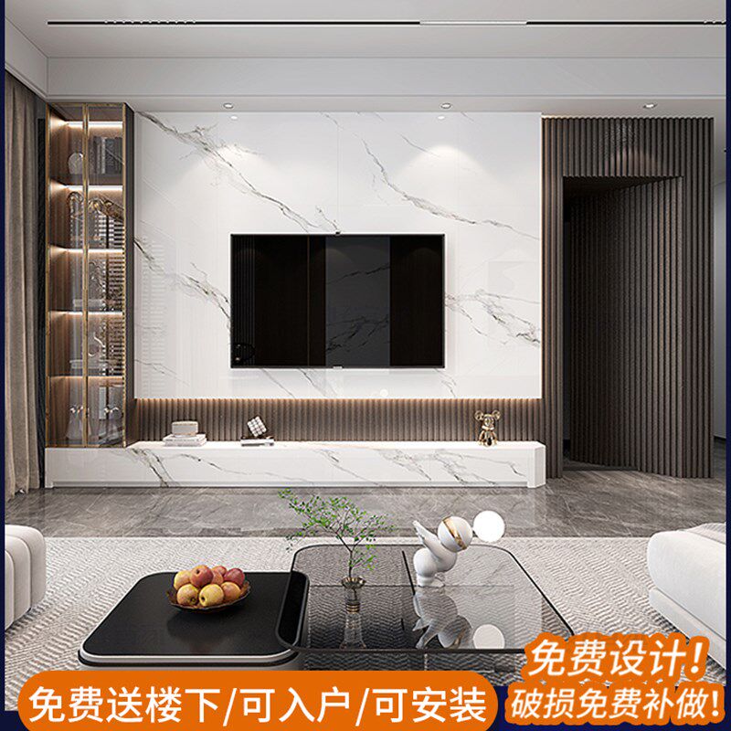 极简悬空岩板背景墙带隐形门电视墙一体客厅格栅暗门影视墙瓷砖