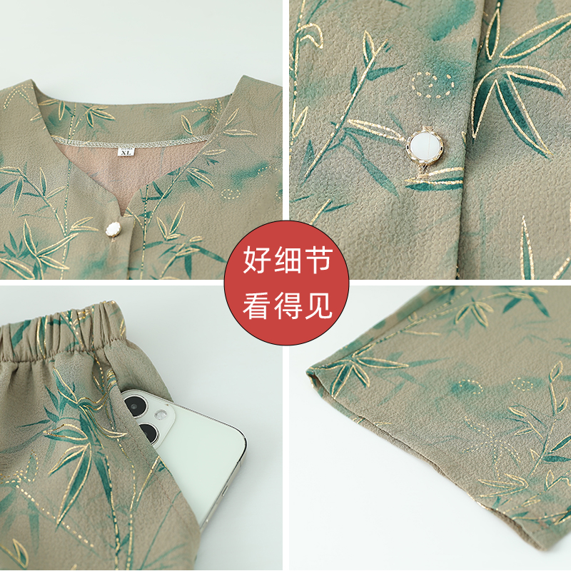 奶奶夏装中老年人妈妈短袖衬衫女夏季母亲婆婆老太太两件套装