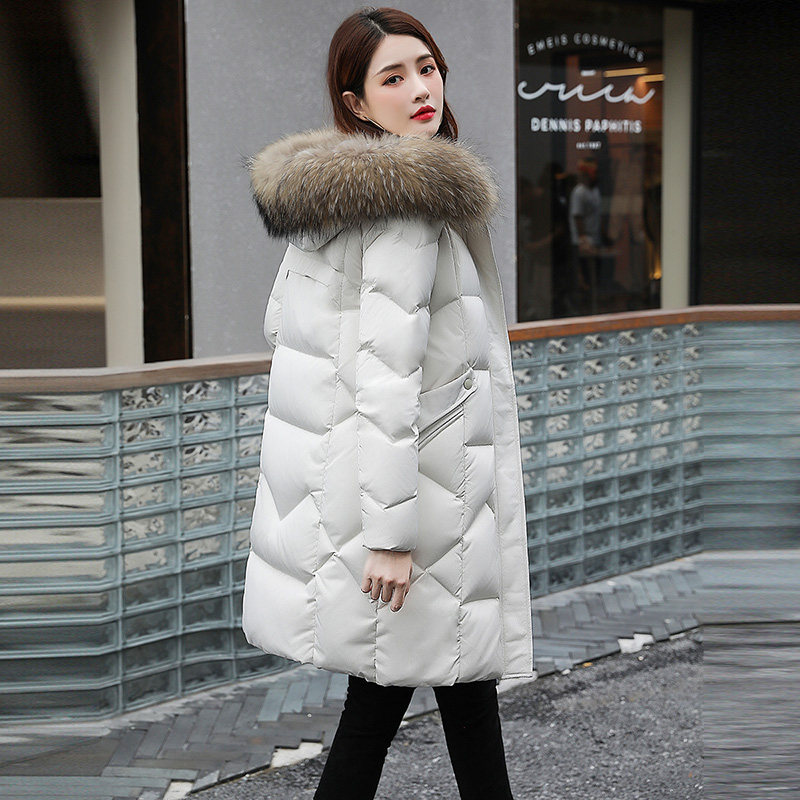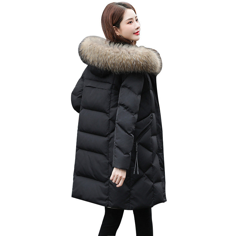 羽绒服女士中长款2025年新款冬季时尚外套真大毛领黑色品牌白鸭绒