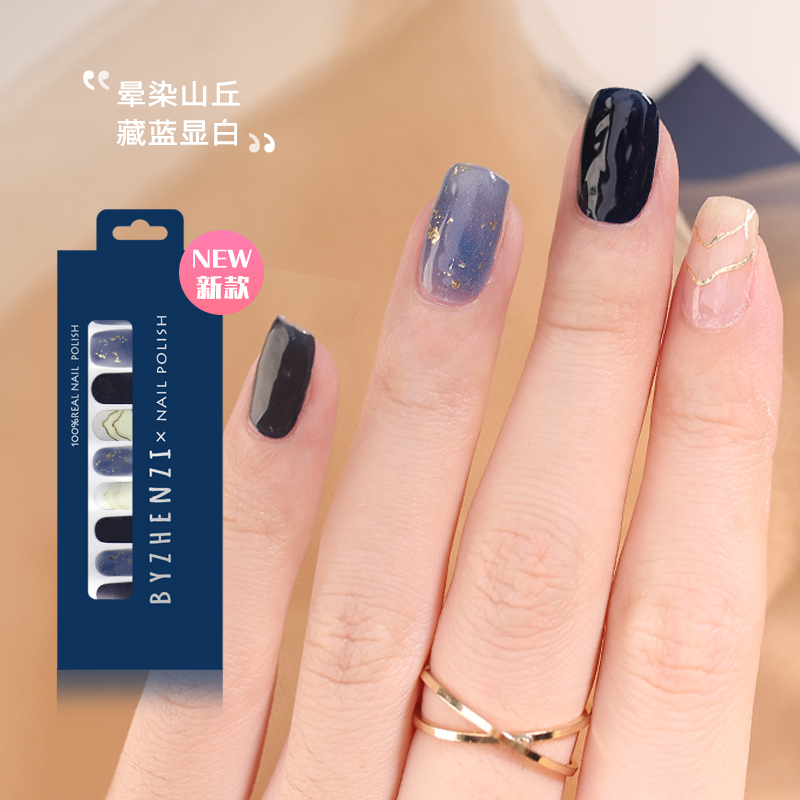 BYZHENZI STORE 【深海山丘】藏蓝色显白持久贴纸甲油膜