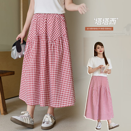 小波家2026夏季胖mm显瘦直筒韩版高腰拼接格纹半身裙