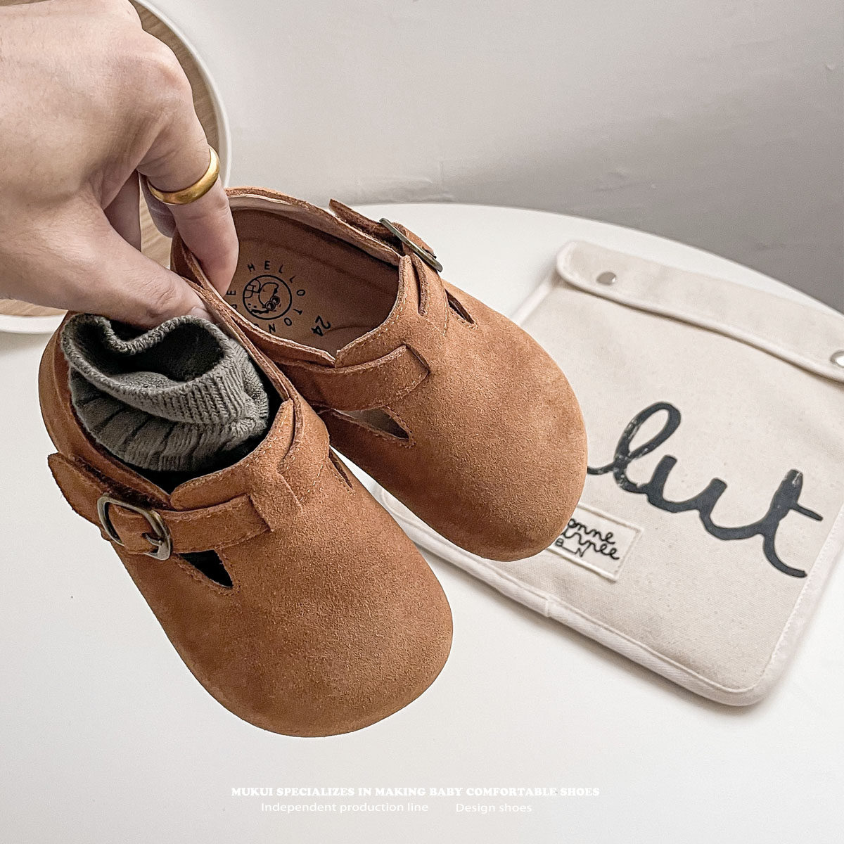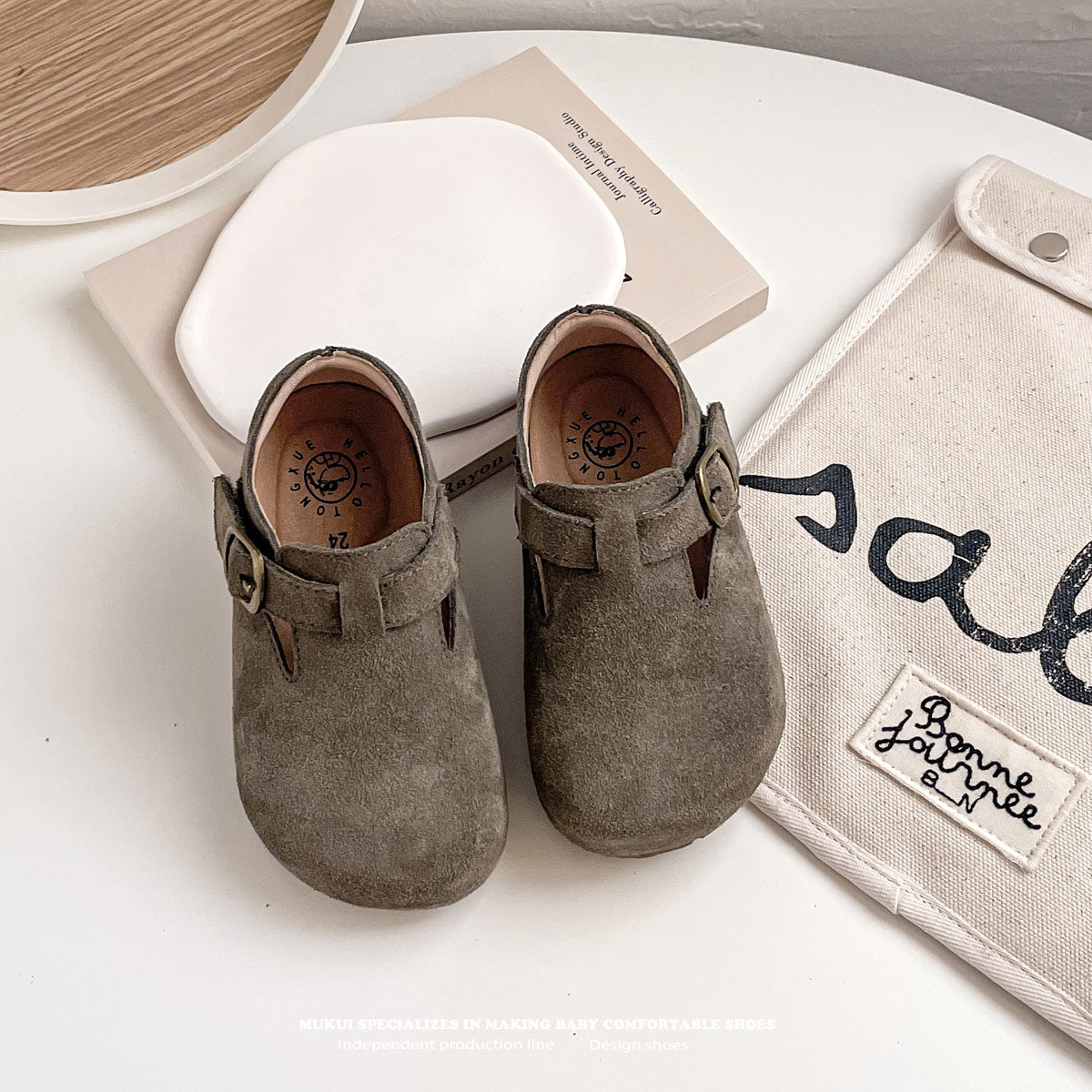 慕葵家复古儿童勃肯鞋韩国男童豆豆鞋森系真皮宝宝加绒女童公主鞋