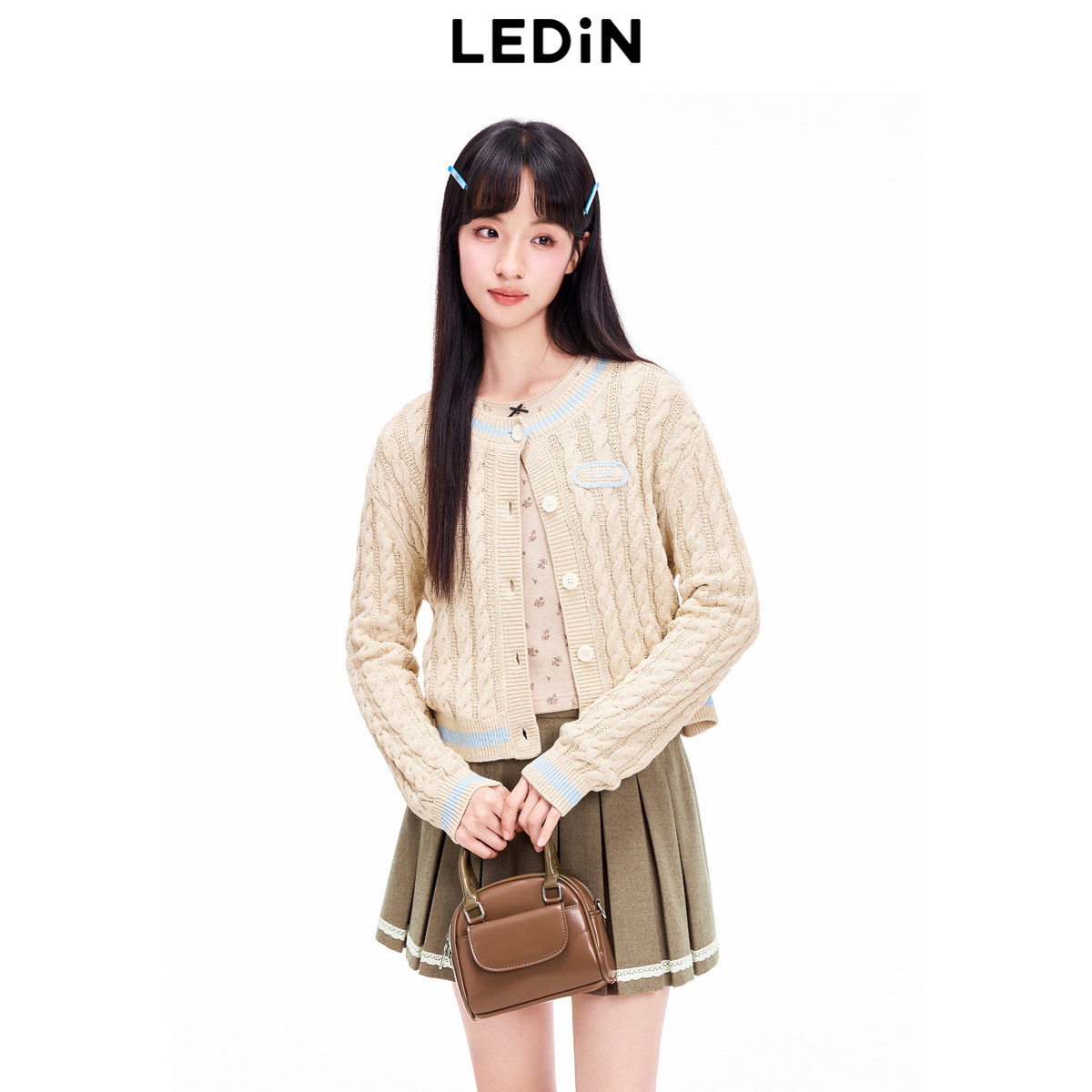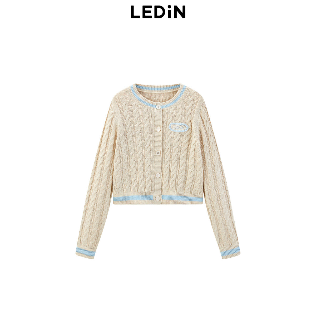 【商场同款】乐町撞色绞花线开衫冬新款针织毛衣外套C1EDE4208
