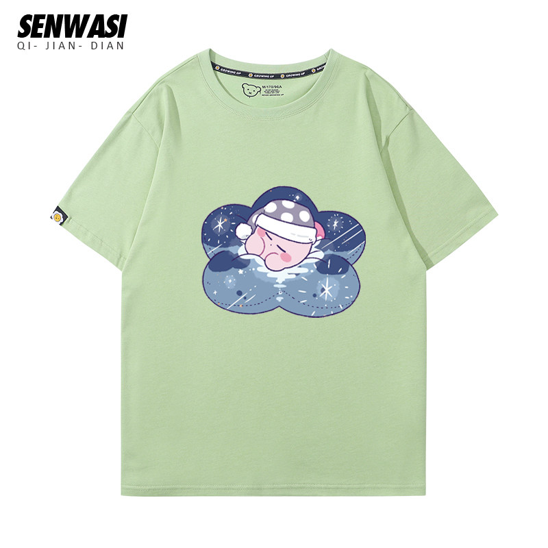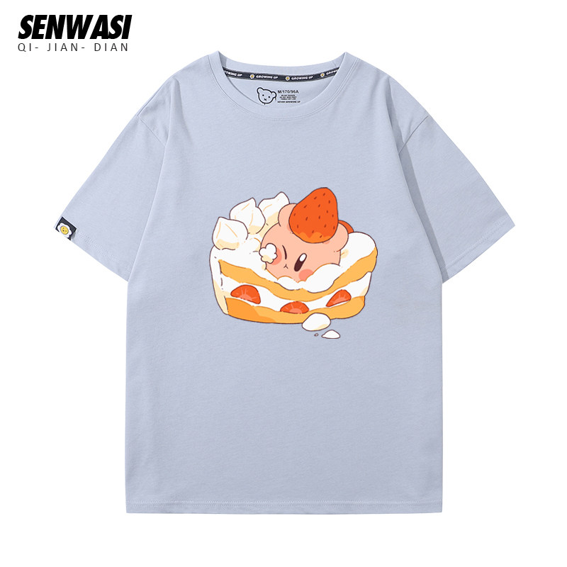 星之卡比联名T恤男女儿童卡通Q版可爱纯棉短袖宽松潮流情侣装上衣