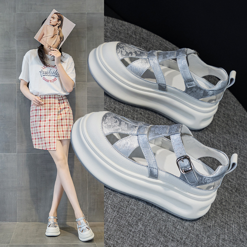 包头罗马凉鞋女2025夏季新款百搭真皮爆款镂空休闲国风厚底猪笼鞋