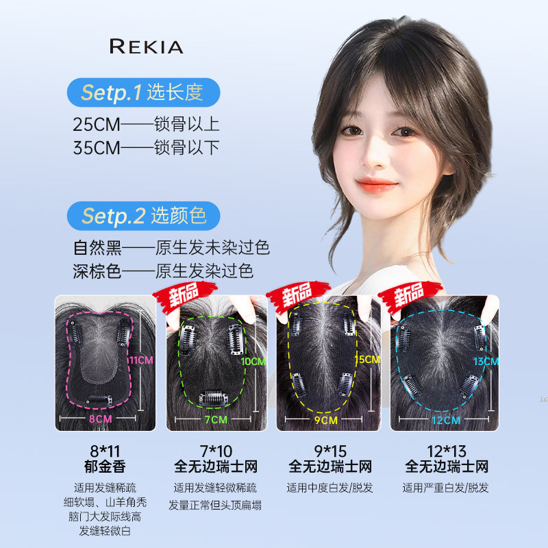 瑞家瑞士网八字刘海假发夏薄款女真发发片头顶遮白发高颅顶假发片