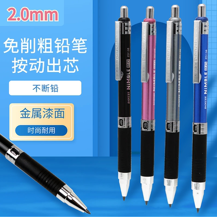优质宝克牌2.0自动铅笔儿童免削2B考试铅笔按动不断粗铅防滑舒适