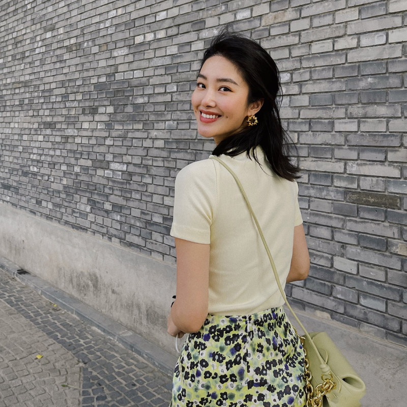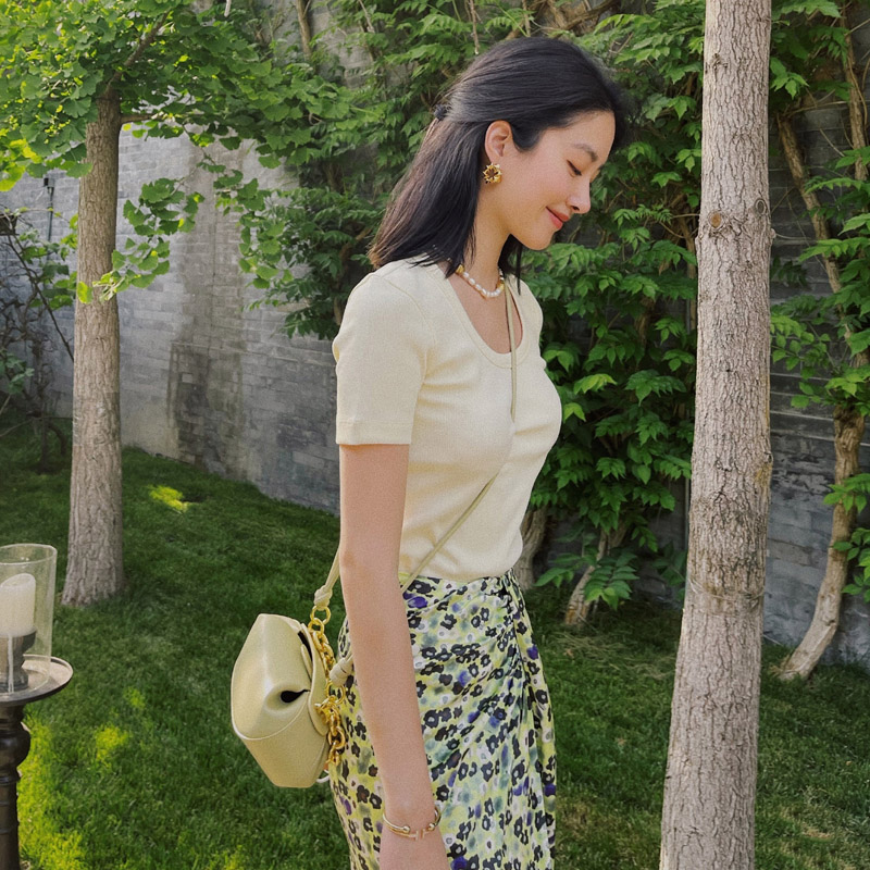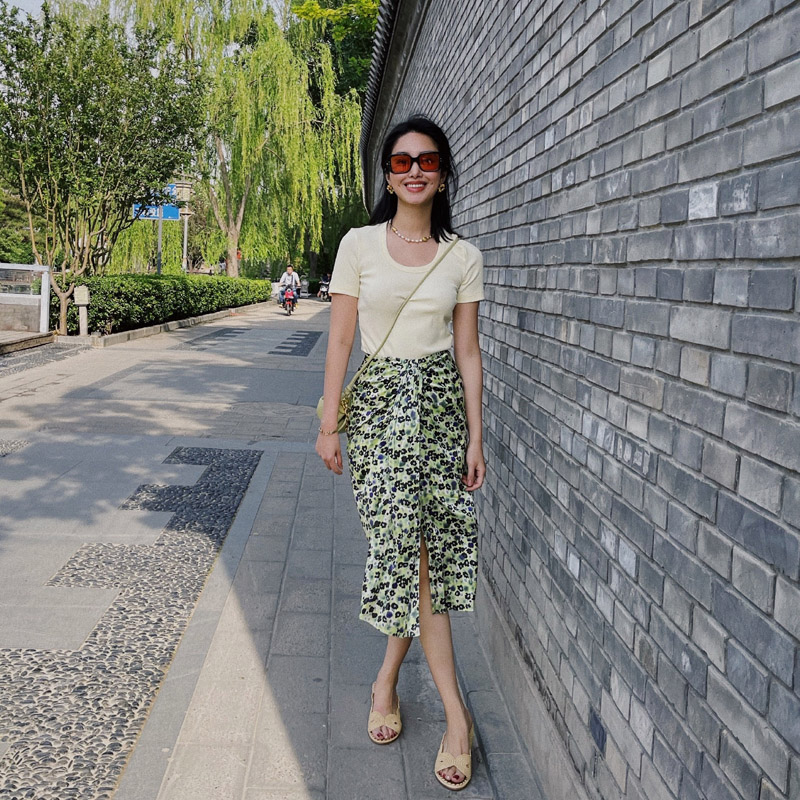 小众绿色开叉包臀裙杨采钰同款