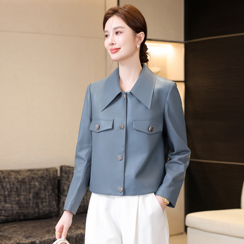 高端真皮皮衣女2025春秋新款白领气质绵羊皮皮夹克翻领外套短款