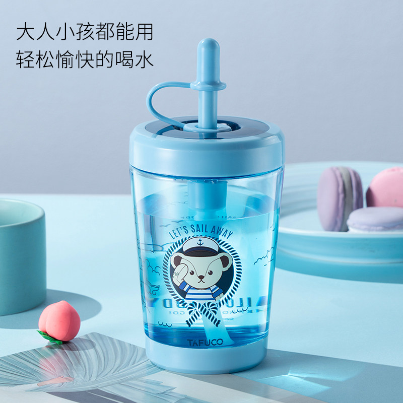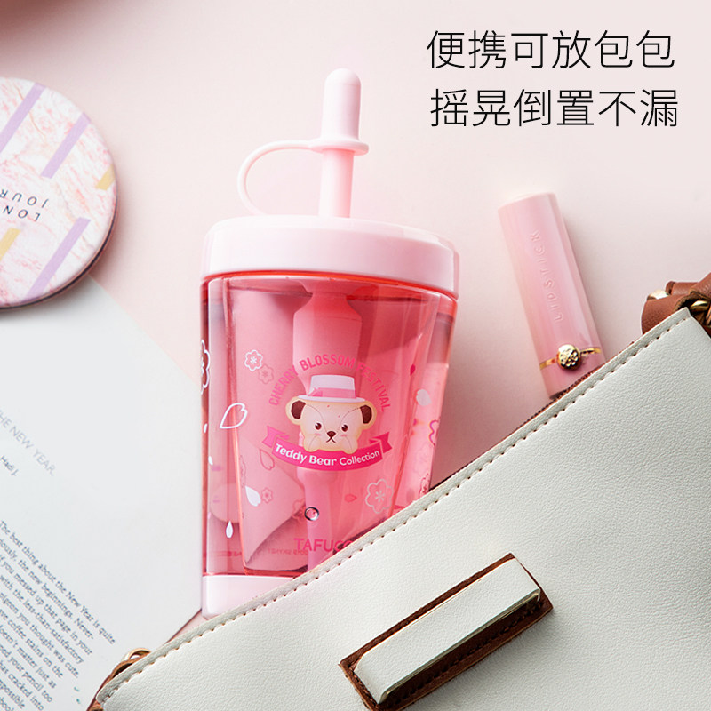 TAFUCO/泰福高泰迪吸管水杯便携可爱少女网红创意儿童塑料杯大人