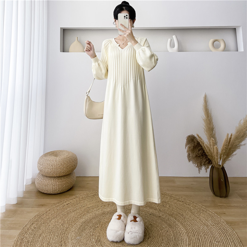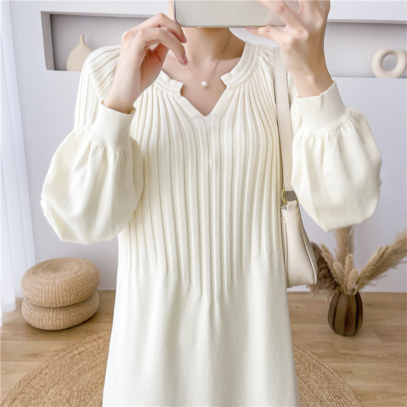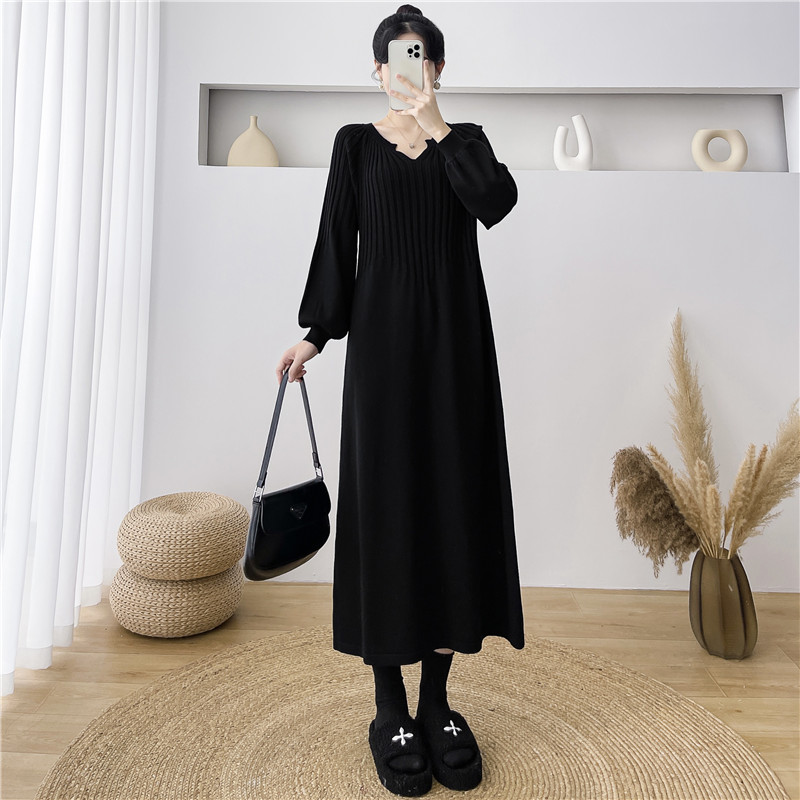 秋冬新款宽松显瘦长袖针织连衣裙高级感长款打底内搭毛衣裙女长裙