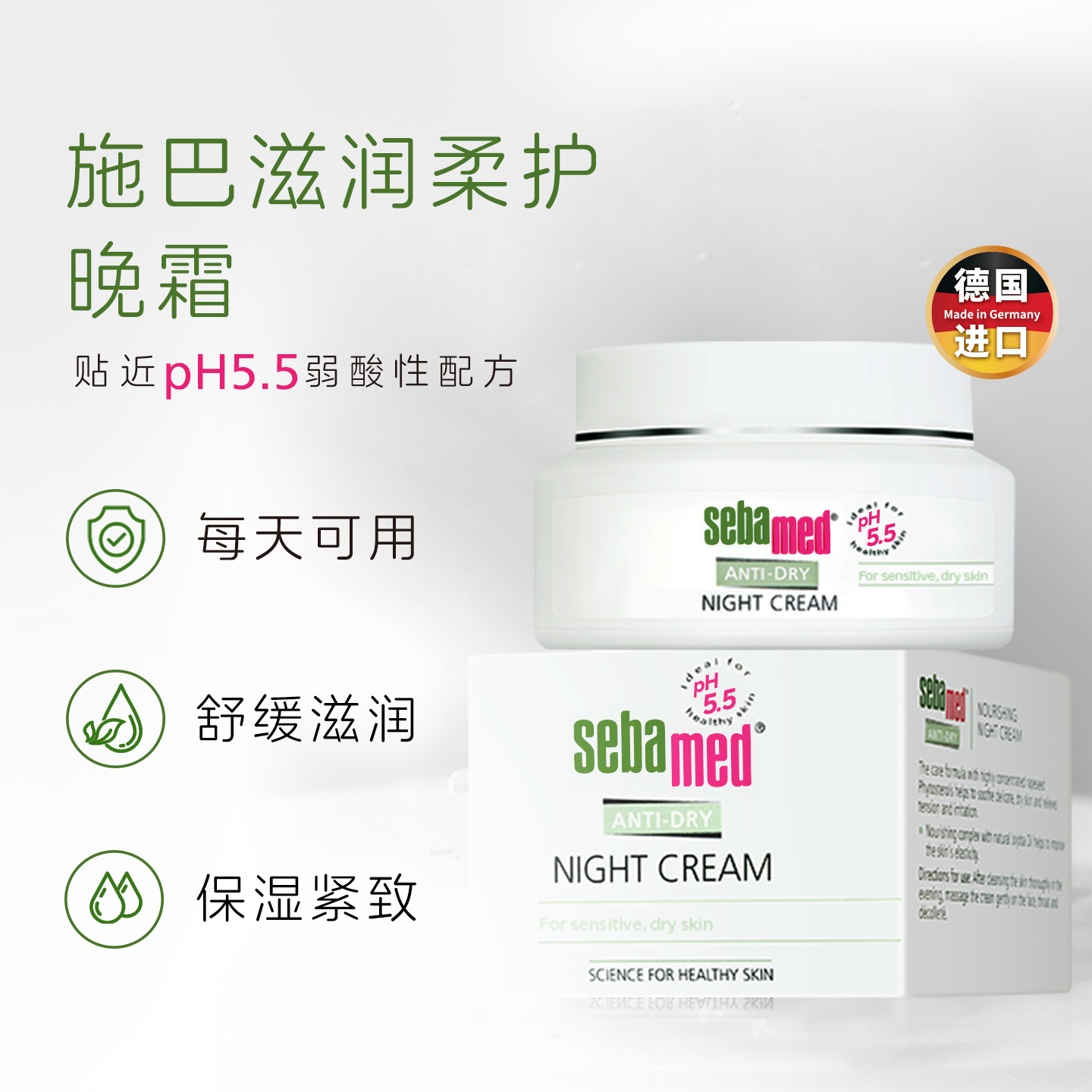 sebamed施巴滋润柔护晚霜近pH5.5秋冬面霜夜间保湿50ml效期至26.3