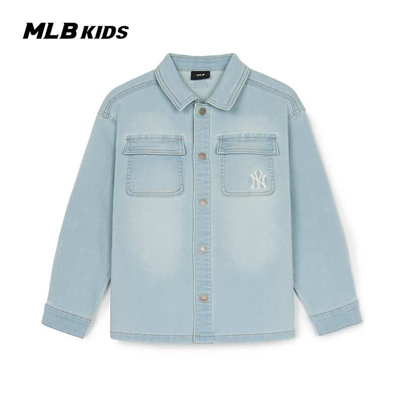 MLB儿童官方男女童潮流渐变老花背标宽松牛仔梭织衬衫25春夏新款