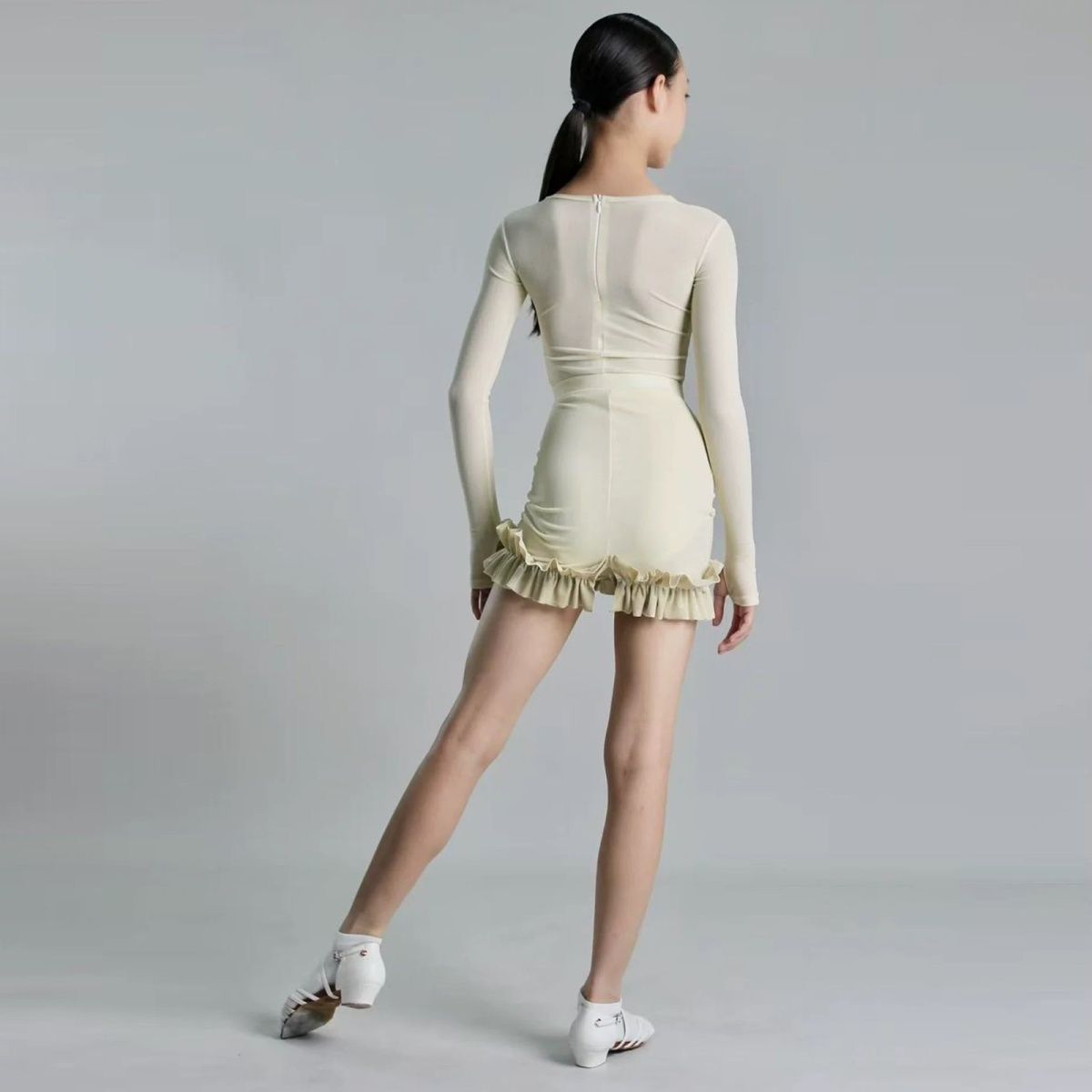2025秋冬新款女童拉丁舞服练习服高级感镂空长袖上衣木耳边包臀裙